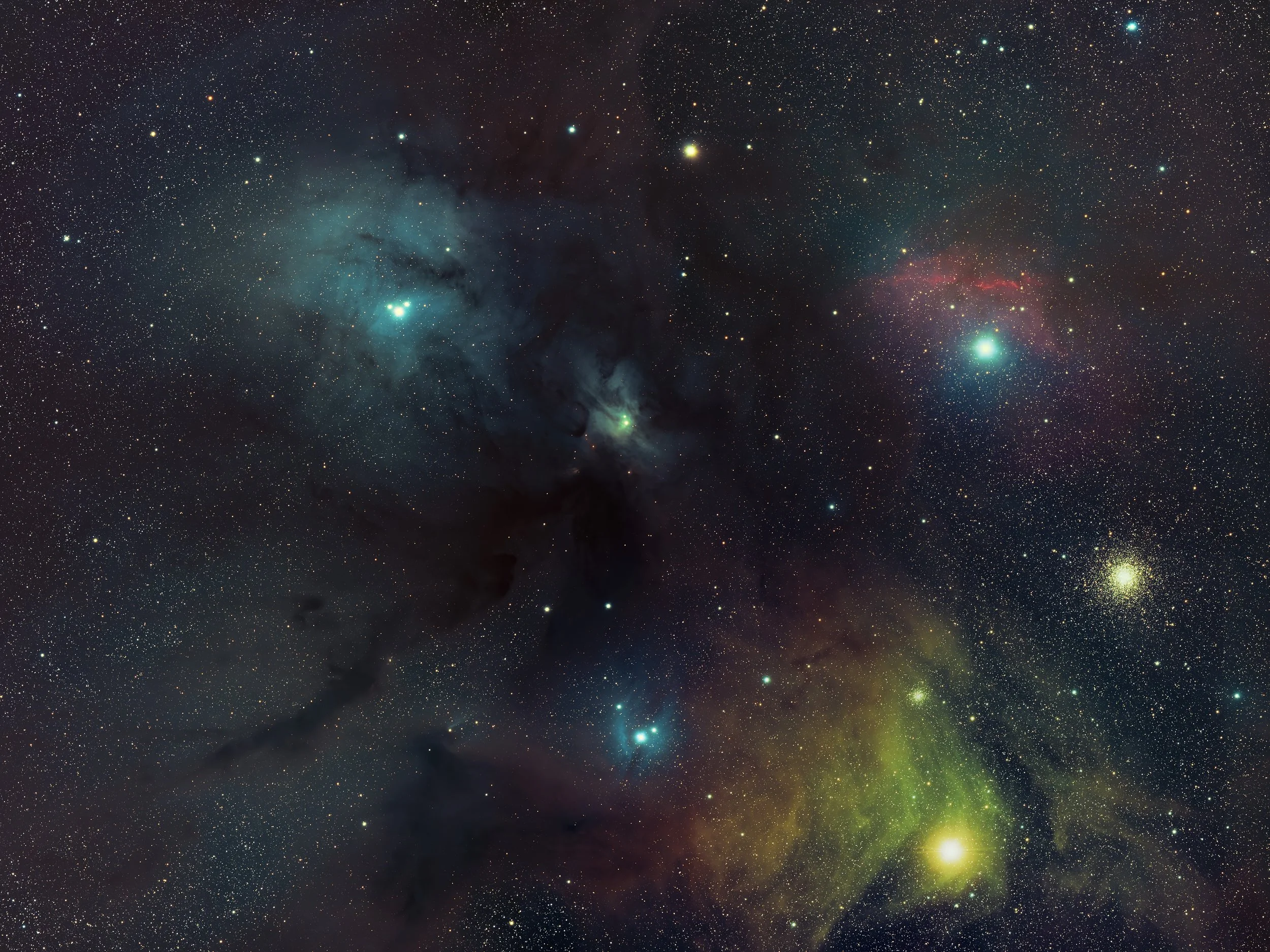 Rho Ophiuchi Cloud Complex (located near the core of the Summer Milky Way). This is a region of reflection and emission nebulae surrounding numerous bright stars.
